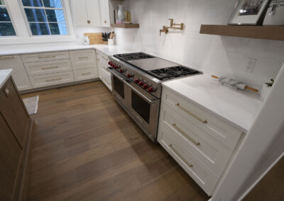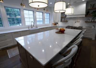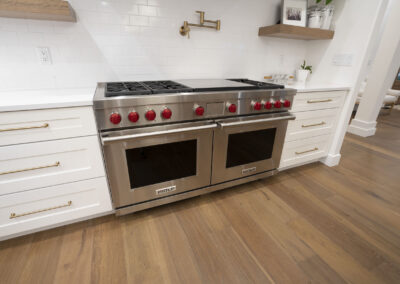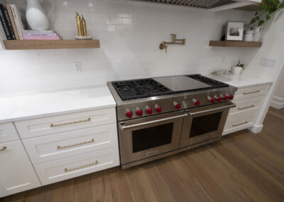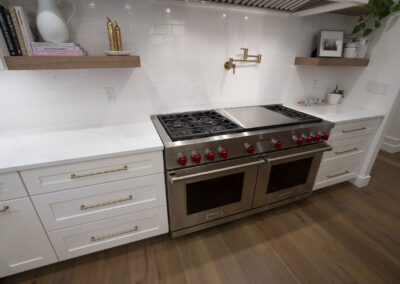 This superbly appointed kitchen features a 60″ Wolf range and a custom hood built by Legacy Wood Creations for the Wolf ventilation system.  The Subzero refrigeration has matching panelfront appliances, as well as dual dishwashers on each side of the sink.